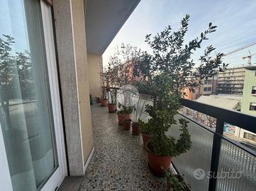L'appartamento si apre su un accogliente ingresso che conduce a un luminoso soggiorno con amio balcone, perfetto per momenti di relax e convivialità. La cucina è abitabile e funzionale. La zona notte è composta da due camere da letto di generose dimensioni e un bagno finestrato cn box doccia. Presente anche aria condizionata e colonnina macchina elettrica in Via Ettore Ponti/Via Binda.