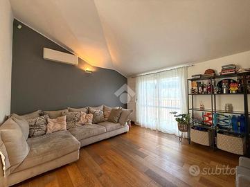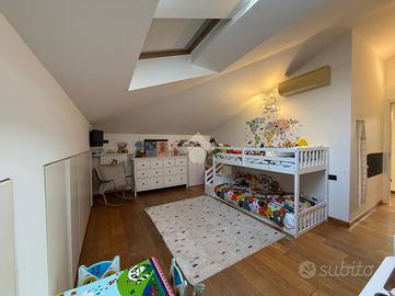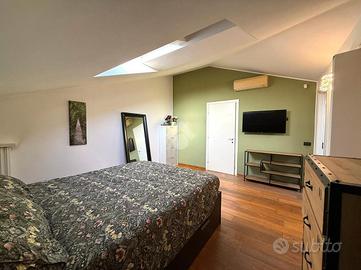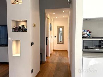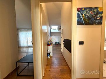 In stabile di recente costruzione, a circa 20 minuti a piedi dalla stazione e dalla linea M3 di Affori FN, ben fornito da tutti i servizi e dalle linee di superficie, proponiamo appartamento di tre locali sito al settimo ed ultimo piano con ascensore. L'immobile è composto da ingresso in disimpegno, cucina abitabile dotata di balcone e zona lavanderia e un ampio soggiorno dotato anch'esso di balcone. Proseguendo nel corridoio troviamo la zona notte, dove è presente una camera matrimoniale munita di cabina armadio e bagno di padronanza con doccia, oltre ad un altro bagno con vasca e ad una seconda camera da letto. Entrambi i bagni sono finestrati con lucernari. L'abitazione risulta luminosa e silenziosa grazie alla doppia esposizione ad est-ovest con affaccio sull'interno condominiale. E' presente un impianto di allarme, un impianto di climatizzazione trial split a pompe di calore, zanzariere, infissi in doppio vetro, persiane, caminetto da parete alimentato a bioetanolo e lucernari con apertura motorizzata. Cantina di pertinenza, ampia metratura, possibilità di arredo e suppellettili. Completa la proprietà un box ad uso autorimessa di 14 mq sito al piano seminterrato del medesimo condominio; misure: altezza apertura: 2,19 mt / larghezza apertura: 2,39 mt / larghezza interna: 2,63 mt / lunghezza interna: 4,99 mt / altezza interna: 2,45 mt. Libero da dicembre 2026.