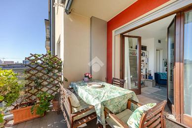 IN CONTESTO RESIDENZIALE DI RECENTE COSTRUZIONE, VIDEOSORVEGLIATO, BEN ABITATO E CON AMPIO PARCO CONDOMINIALE DOTATO DI AREA BIMBI, PROPONIAMO IN VENDITA OTTIMO E LUMINOSO TRILOCALE SITO AL NONO PIANO DI 14. L'appartamento è composto da: soggiorno con angolo cottura e spazioso balcone, ideale per momenti di relax e convivialità all'aperto, cameretta, disimpegno attrezzato con predisposizione per lavatrice e asciugatrice, camera da letto e funzionale bagno finestrato. Completano la proprietà due cantine di pertinenza, di cui una da 28mq. Inoltre, è disponibile il box auto di 25mq acquistabile separatamente al prezzo di €45.000. L'appartamento è in ottime condizioni interne, parzialmente arredato e dotato di riscaldamento e raffrescamento a pavimento, zanzariere, tende da sole, perfetto per chi cerca comfort ed una soluzione pronta da vivere.