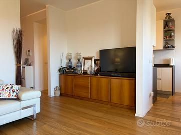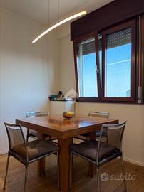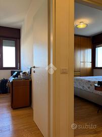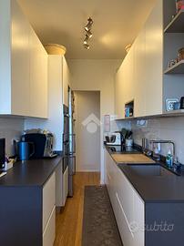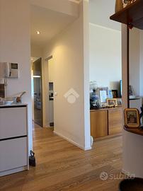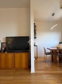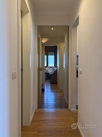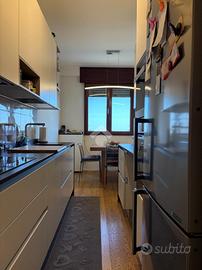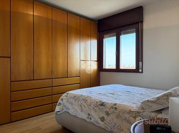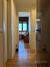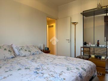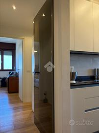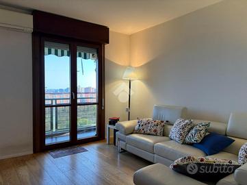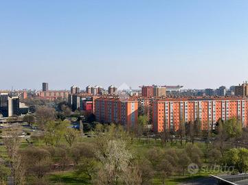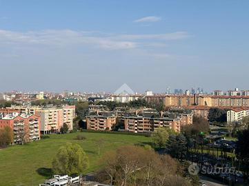 L'appartamento si trova nel cuore del quartiere Gallaratese, in un contesto residenziale molto apprezzato per la presenza di ampi spazi verdi, aree pedonali, scuole, servizi di ogni genere e ottimi collegamenti con il centro città, grazie alla presenza del Centro Commerciale Bonola e della fermata della metropolitana Bonola (linea rossa). La zona è particolarmente comoda per la vita quotidiana: nelle immediate vicinanze si trovano negozi, supermercati, strutture sportive e parchi, rendendola ideale sia per famiglie che per chi cerca tranquillità senza rinunciare ai servizi. Lo stabile è inserito in un contesto curato e riservato, immerso in un ampio giardino che contribuisce a creare un ambiente piacevole e silenzioso. L'edificio è dotato di doppio ascensore e montacarichi ed è privo di barriere architettoniche, risultando facilmente accessibile. L'appartamento, posto ad un piano alto, si distingue per la vista sul centro città e per la luminosità degli ambienti, grazie al doppio affaccio est sud che garantisce luce naturale in ogni ora del giorno. L'ingresso è valorizzato da un pratico guardaroba su misura. Il soggiorno è accogliente, con accesso al balcone con vista panoramica sullo skyline milanese. La cucina, abitabile e funzionale grazie alla presenza di un'area pranzo, si inserisce perfettamente nella zona giorno. La zona notte è ben separata da un'elegante porta in vetro, soluzione moderna che crea un piacevole gioco di luce tra gli ambienti mantenendo al tempo stesso una chiara divisione degli spazi; qui troviamo due camere da letto di buone dimensioni, un bagno finestrato con ampio box doccia e due pratici ripostigli, indispensabili per una gestione ordinata della casa. L'immobile si presenta in ottime condizioni grazie a una recente ristrutturazione ed è rifinito con materiali moderni: infissi artigianali in legno/PVC con doppio vetro e apertura vasistas, zanzariere, tende da sole, impianto di climatizzazione, parquet uniforme in tutti gli ambienti, vid