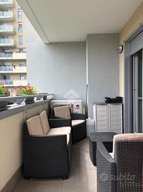Via Castellanza: l'immobile è sito in un condominio di recente costruzione in classe energetica A. Gli standard qualitativi secondo i quali sono stati realizzati gli appartamenti rispondono alle esigenze di risparmio ed efficienza energetica, garantendo al tempo stesso innovazione tecnologica e comfort abitativo. Le moderne rifiniture, l'impianto elettrico con centralino domotico, i serramenti a taglio termico, gli impianti di riscaldamento a pannelli radianti, le coibentazioni acustiche delle pareti, l'abbattimento delle barriere architettoniche e tutti gli altri dettagli arricchiscono un progetto già impreziosito dal parco interno condominiale, dagli ampi terrazzi e molto altro ancora. L'edificio, dotato di portineria diurna, sorge in una zona altamente strategica, a cavallo tra lo storico quartiere Gallaratese, servito da linee metropolitane e di superficie, e la nuova realtà di Cascina Merlata, raggiungibile in pochi passi attraverso l'ampio parco botanico che conduce fino al moderno Merlata Bloom. L'appartamento, dal taglio moderno, dispone di una razionale distribuzione degli spazi interni: l'ingresso offre lo sguardo sull'accogliente area living, luminosa grazie all'affaccio sul terrazzo loggiato con vista sul parco circostante. La zona notte, ben disimpegnata, ospita una camera matrimoniale di buone dimensioni, una cameretta servita da balcone, due bagni, uno dotato di vasca e l'altro di ampio box doccia, e un comodo ripostiglio, spazio essenziale per le moderne esigenze abitative. La doppia esposizione garantisce luminosità e un ottimo ricircolo d'aria in tutti gli ambienti. L'immobile si presenta con finiture moderne e dotazioni che ne aumentano il comfort abitativo, tra cui infissi di moderna fattura, pavimentazione uniforme in gres porcellanato effetto legno, impianto di climatizzazione, tapparelle motorizzate, videocitofono e porta blindata. Completano la proprietà una comoda cantina e il box auto a € 25.000, comodamente raggiungibili tramite due m