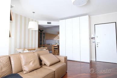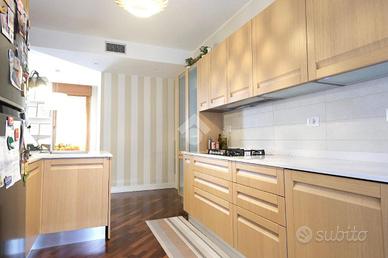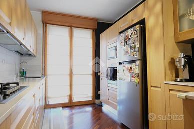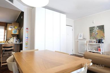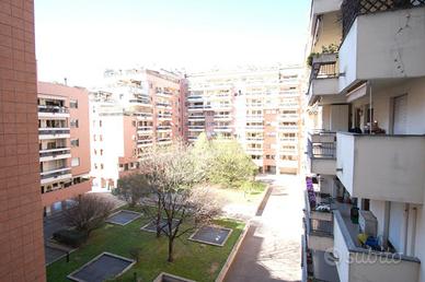 Rubattino - Vendita ampio trilocale ristrutturato con doppi servizi, terrazzo, cantina e possibilità box auto L'appartamento che proponiamo è all'interno del contesto del residenziale quartiere Rubattino, caratterizzato da ampi spazi verdi e aree per il gioco dei bambini. Il condominio è interamente privo di barriere architettoniche, infatti sia l'appartamento, sia il box e la cantina sono accessibili attraverso due ampi ascensori. L'edificio è inoltre dotato di portineria, di giardino condominiale e di doppio accesso: da via Caduti in Missione di Pace e dalla piacevole via pedonale che conduce direttamente al parco della Lambretta. La porta d'ingresso si apre sul soggiorno, molto luminoso grazie alla presenza di tre serramenti. La pianta molto razionale di tipo open space è molto conviviale e permette un'ottima divisione degli spazi, definendo la zona tv con il divano, la zona pranzo e la cucina. Quest'ultima è dotata anche di una penisola e di ampi spazi d'appoggio. Il disimpegno della zona notte ospita un comodo armadio guardaroba e separa gli altri ambienti della casa. La camera matrimoniale è anch'essa molto luminosa e tutti gli arredi trovano comodamente posto. Il bagno en suite, con finestra e vasca, è accessibile direttamente dalla stanza donando ulteriore privacy e comfort. La seconda camera è ampia e permette svariate possibilità d'arredo. Il secondo bagno è dotato di box doccia. All'interno del disimpegno trova posto anche un ampio e molto utile ripostiglio che funge anche da zona lavanderia. La cura dei dettagli si evince anche dall'utilizzo della porta rasomuro che lo rende meno visibile donando continuità visiva allo spazio. I pavimenti sono in parquet e i rivestimenti dei bagni sono in ceramica. Gli infissi sono in legno con doppi vetri e la porta d'ingresso è blindata. Presente anche il videocitofono e l'impianto di allarme cablato con 2 sirene. L'impianto di aria condizionata è canalizzato. Il condominio è servito dal servizio di telerisc