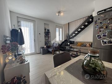 In via Montegani proponiamo in vendita moderna soluzione di 90 mq, in nuova costruzione del 2019 e in classe energetica A2, ideale per chi cerca comfort abitativo ed efficienza energetica. L'ingresso si apre su un ampio e luminoso soggiorno con cucina a vista, ambiente accogliente e ben organizzato. Completa il piano un bagno finestrato con antibagno adibito a zona lavanderia, rifinito con materiali moderni. Una comoda scala interna conduce alla zona notte, dove troviamo una camera da letto e uno studio, perfetto come seconda stanza, area smart working o spazio hobby. L'immobile è dotato di riscaldamento a pavimento e raffrescamento idronico, garantendo elevato comfort in ogni stagione. Soluzione di recente costruzione, caratterizzata da finiture contemporanee e ottime prestazioni energetiche, pronta per essere abitata. Con possibilità di box doppio,con accesso dal cortile interno.