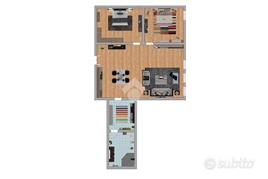 L'immobile, attualmente in fase di restauro completo con possibilità di personalizzazione delle finiture e degli spazi interni creando la terza camera, si compone da ingresso al piano terra con magazzino, al primo piano troviamo soggiorno di 50 mq, bagno finestrato con velux di 8 mq, una camera matrimoniale di 16 mq e una camera doppia di 14 mq.