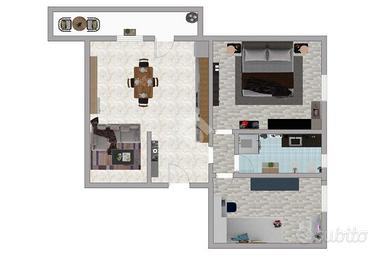 L'abitazione si compone di ingresso, soggiorno con angolo cottura di circa 27 mq, caratterizzato da porta finestra con accesso al terrazzo, camera matrimoniale di 20 mq, camera doppia di 13 mq, bagno finestrato con doccia e pratico ripostiglio.