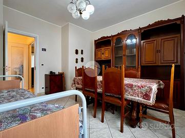In strada Genova, all'interno di una palazzina degli anni '70, proponiamo in vendita un alloggio al piano rialzato. L'ingresso avviene tramite portoncino blindato e si apre direttamente su un ampio salone di generose dimensioni con angolo cottura, reso luminoso da due portefinestre che conducono al balcone verandato con affaccio tranquillo sull'interno cortile. Un pratico disimpegno introduce la zona notte, composta da due camere da letto matrimoniali. Completano la proprietà un comodo ripostiglio, un bagno finestrato dotato di vasca e una cantina al piano seminterrato. Il riscaldamento è centralizzato ed è gestito tramite termovalvole, soluzione che consente una regolazione più efficiente dei consumi. Un appartamento funzionale, accogliente e ideale per chi cerca spazi ben distribuiti in una posizione comoda e servita.