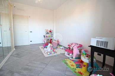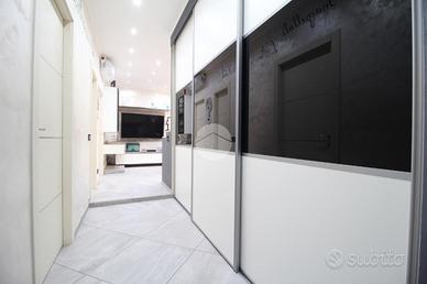 L'appartamento è situato al secondo piano di un condominio edificato a metà degli anni sessanta nella borgata di Moriondo. Tramite porta blindata si accede ad un corridoio che disimpegna la zona giorno dalla zona notte. Il soggiorno con cucina a vista è di generose dimensioni. Sia il corridoio che il soggiorno sono dotati di una controsoffittatura con luci a led ed una particolare illuminazione definita 'cielo stellato'. La camera da letto matrimoniale è dotata di un bagno privato con doccia. La seconda camera ed il bagno principale completano la proprietà. L'immobile è stato ristrutturato in tutte le sue parti nel 2019. Gli infissi sono in pvc con doppio vetro ed in tutte le aperture sono presenti le zanzariere. L'impianto elettrico è sezionato per stanza, il sistema d'allarme è sia volumetrico che perimetrale e sono presenti i condizionatori. Al piano interrato è presente una cantina.