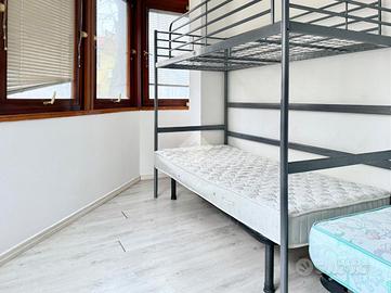 L'ingresso accompagna alla zona giorno composta da un soggiorno luminoso con angolo cottura, pensato per un utilizzo pratico e moderno degli spazi. La zona notte comprende una camera matrimoniale, una camera singola e un bagno completo di box doccia e ventola di aspirazione.