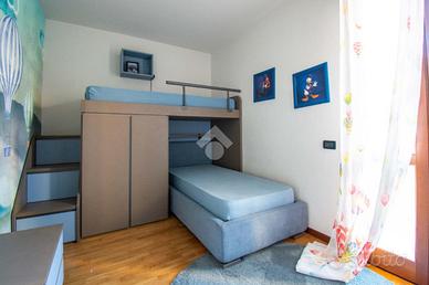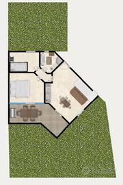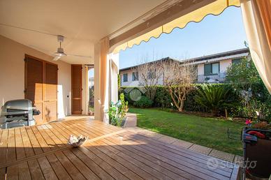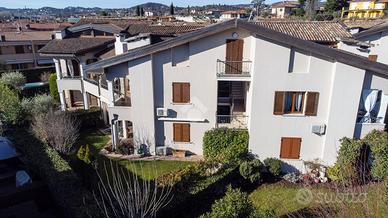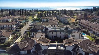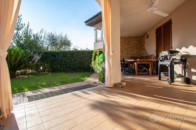 MONIGA DEL GARDA - In curato complesso residenziale con piscina, situato in una zona tranquilla e a breve distanza dal centro del paese, proponiamo in vendita ampio trilocale con giardino privato. L'abitazione si apre su una luminosa zona living con cucina a vista, dotata di porta finestra con accesso al portico coperto e all'area esterna, completamente recintata e ben curata, ideale per momenti di relax all'aperto. La zona notte comprende una camera matrimoniale con accesso diretto allo spazio verde, una seconda camera con affaccio su un ulteriore giardino sul retro e un bagno finestrato. Dal soggiorno, tramite una scala interna, si accede alla taverna di generose dimensioni dotata di secondo servizio/lavanderia e collegamento diretto al box di proprietà. La soluzione è completa di impianto di climatizzazione ed è ideale sia come prima abitazione sia come casa vacanze, inserita in un contesto ordinato con spazi comuni ben mantenuti. EN: Within a well-maintained residential complex with a swimming pool, located in a quiet area just a short distance from the town center, we offer for sale a spacious two-bedroom apartment with a private garden. The property opens onto a bright living area with an open-plan kitchen, featuring a French door that leads to the covered porch and the outdoor space, which is fully fenced and well kept--ideal for relaxing moments outdoors. The sleeping area includes a master bedroom with direct access to the green area, a second bedroom overlooking an additional rear garden, and a windowed bathroom. From the living room, an internal staircase leads to a generously sized basement/tavern area, complete with a second bathroom/laundry room and direct access to the private garage. The property is equipped with air conditioning and is ideal both as a primary residence and as a holiday home, set within a tidy residential context with well-maintained communal areas.