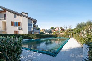 MONIGA DEL GARDA - In curato complesso residenziale con piscina, situato in una zona tranquilla e a breve distanza dal centro del paese, proponiamo in vendita ampio trilocale con giardino privato.