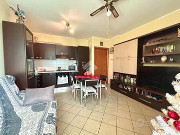 Entrando, si accede direttamente al luminoso soggiorno open space con angolo cottura, un ambiente moderno e ben organizzato, pensato per la vita quotidiana.