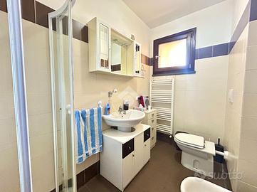 La zona notte comprende una camera matrimoniale con terrazzo, una camera singola e un ripostiglio con attacco per la lavatrice, per ottimizzare gli spazi e la praticità.