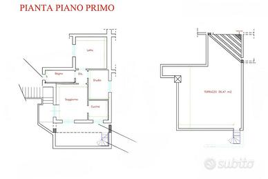 L'immobile si sviluppa al piano primo, accessibile da una scala esterna che conduce alla zona abitativa composta da:
