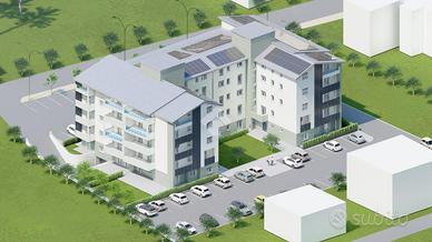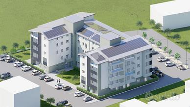 Isolamento termico a cappotto pari a 8 cm con finiture colorate. Ogni unità immobiliare sarà dotato di impianto fotovoltaico da 2 a 3 kW. Sarà realizzato un impianto fotovoltaico della potenza di 4 kW a servizio dell'impianto elettrico condominiale, comprensivo di batteria di accumolo di 5 kW. L'altissimo efficientamento energetico consentirà un notevole abbattimento dei consumi quotidiani dell'immobile.
