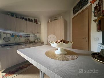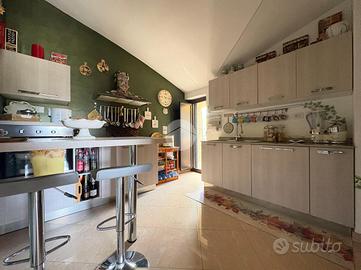 La cucina, separata e abitabile, gode di una seconda uscita su un balcone, garantendo comfort e funzionalità agli spazi della zona giorno.