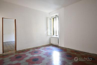 L'immobile si trova al primo piano e offre un balcone in comune che dona luce e freschezza all'ambiente. La disposizione interna è ben studiata, con un ingresso che separa la zona giorno dalla zona notte. Troviamo una cucina spaziosa e luminosa, due comode camere da letto, un bagno e un pratico locale lavanderia.