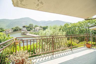 L'appartamento è composto da un'ampia e luminosa zona giorno open space ,caratteristico camino in pietra e laterizio, area cucina con penisola. Da questa zona living è possibile accedere tramite una porta finestra al grande balcone da cui si può ammirare il verde dei monti sabini.