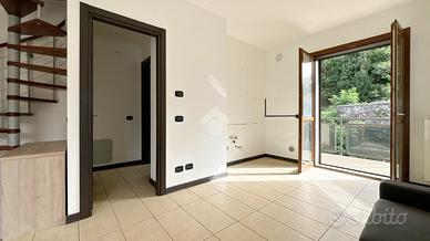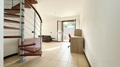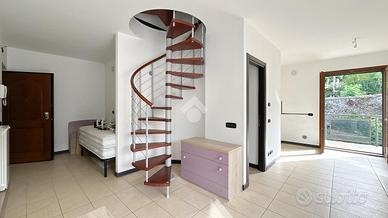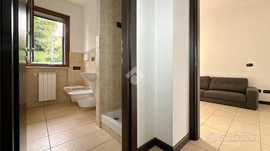Entrando, si viene accolti da un ampio e luminoso soggiorno con angolo cottura, perfetto per chi ama spazi funzionali e accoglienti. Da qui si accede a un balcone, ideale per rilassarsi all'aperto. Sullo stesso livello troviamo un bagno finestrato con box doccia moderno, dotato di tutte le comodità.