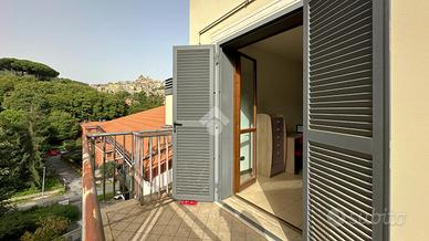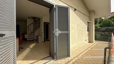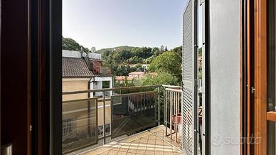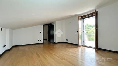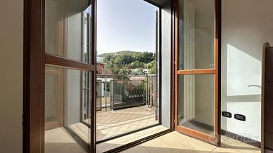 Salendo al piano superiore, l'appartamento continua a stupire con due camere mansardate, caratterizzate da un'atmosfera intima e calda. Una delle camere dispone di un terrazzo panoramico, che regala una vista aperta sulle colline circostanti, un luogo perfetto per godersi momenti di relax all'aria aperta. Il secondo bagno, anch'esso finestrato e completo di box doccia, insieme a un pratico ripostiglio, aggiunge funzionalità e comfort all'intera abitazione.