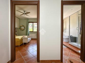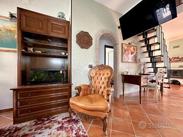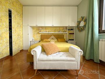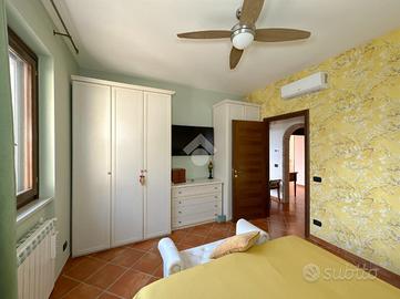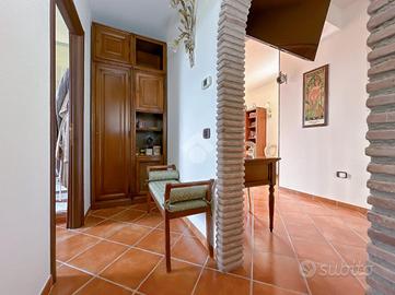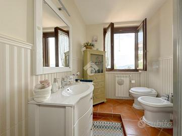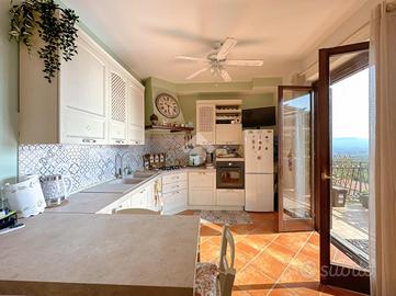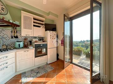 L'accesso all'abitazione avviene attraverso alcune rampe di scale: un aspetto che, oltre a garantire maggiore privacy e silenzio, valorizza ulteriormente la posizione riservata e panoramica della casa.