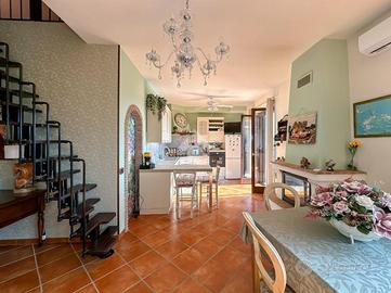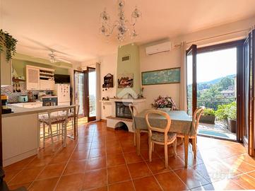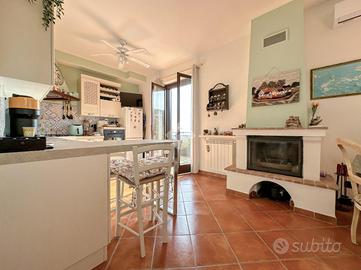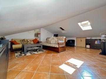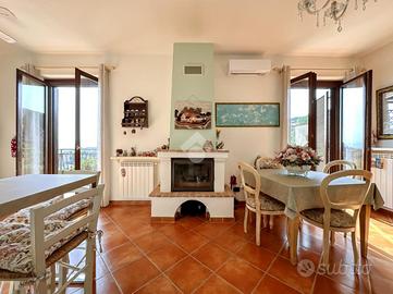 La casa, in ottimo stato e subito abitabile, si apre su un accogliente salone con camino e angolo cottura, con uscita su un balcone vivibile dotato di tende da sole e affacciato su un panorama incantevole. La zona notte comprende una camera matrimoniale con armadio a muro, un pratico ripostiglio e un bagno recentemente ristrutturato. Nel salone è inoltre possibile ricavare una seconda camera, come in origine. Al piano superiore si sviluppa una mansarda rifinita, ideale come seconda camera, studio o stanza per ospiti, completa di un secondo bagno con vasca e velux oscuranti che garantiscono comfort e luminosità.