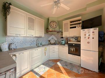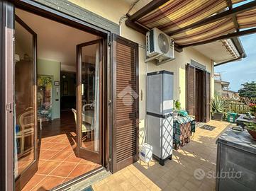 Tra le dotazioni figurano la predisposizione per l'impianto di climatizzazione, connessione internet in fibra ultraveloce, parabola satellitare, persiane in legno, infissi in doppio vetro e impianto elettrico revisionato. La proprietà si completa con un posto auto di proprietà e una piccola striscia di terreno adiacente. La palazzina, composta da soli quattro appartamenti, si presenta in ottime condizioni e assicura un contesto riservato e curato.