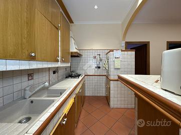 La soluzione si apre su una zona giorno accogliente, composta da un salone impreziosito da un camino e da un angolo cottura a vista, che dona all'ambiente un'atmosfera calda e conviviale.