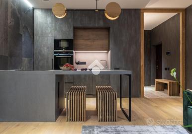 L'ingresso si apre su una zona living accogliente e spaziosa pensata per essere il cuore pulsante della casa da cui si accede alla cucina e alla loggia di circa 16 mq: Le ampie vetrate rendono gli ambienti luminosi e ariosi, amplificando la spazialità e giocando delicatamente con le sfumature dei materiali naturali.