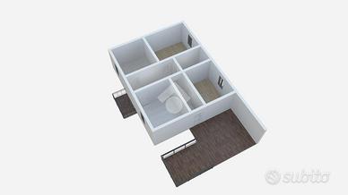 - Soggiorno, cucina con camino, ampio disimpegno con balcone, due camere da letto, bagno con finestra e vasca oltre terrazzo coperto e terrazza panoramica di circa 12 mq.
