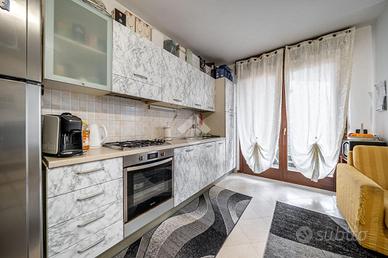 All'ingresso troviamo un ampio soggiorno con cucina open space, con accesso diretto al balcone. Proseguendo lungo il corridoio si accede alla zona notte, composta da due spaziose camere da letto, un bagno finestrato con box doccia e un comodo ripostiglio.