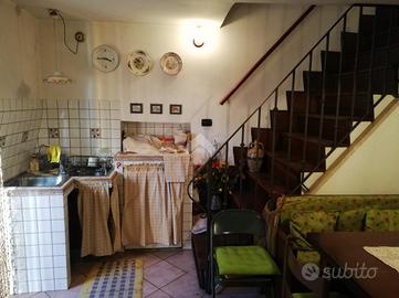 La casa è composta da ingresso, soggiorno con cucina a vista e delizioso camino .