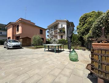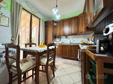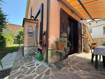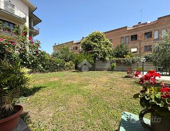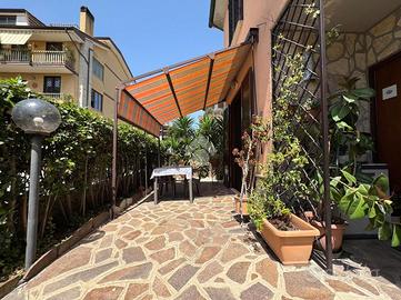 Monterotondo Scalo - Via Valli Teverine In una posizione strategica e servitissima, vicino a tutti i principali servizi, proponiamo questo accogliente appartamento di 85 mq, situato al piano terra di una piccola palazzina senza spese condominiali. L'ingresso si apre su un grazioso soggiorno luminoso, che si collega a una cucina semi-abitabile ben attrezzata, grazie all'uscita diretta sulla zona esterna, potrai goderti pranzi e cene all'aperto in totale comodità. Il salone ampio e versatile completa la zona giorno, offrendo spazio e comfort per ogni esigenza. La zona notte comprende due camere matrimoniali spaziose e confortevoli, perfette per garantire privacy e relax. I due bagni sono arredati con gusto e funzionalità, uno finestrato con vasca e uno cieco con doccia dotato di sistema di areazione meccanica per garantire sempre un ricambio d'aria ottimale e mantenere l'ambiente fresco e salubre. Un pratico ripostiglio esterno contribuisce a mantenere l'ambiente ordinato e organizzato. Uno degli elementi distintivi di questa abitazione è il grande giardino privato di circa 500 mq completo di una piccola casetta in legno ideale come deposito attrezzi, un'oasi verde dove godersi momenti di tranquillità all'aperto, ideali per chi ama il giardinaggio, i giochi all'aperto o semplicemente rilassarsi al sole senza rinunciare alla privacy. L'appartamento è dotato di porta blindata, doppi vetri, zanzariere installate su tutte le finestre e una tenda da sole per godersi il giardino anche nelle giornate più calde. È inoltre predisposto per l'installazione di un sistema d'allarme, per la massima sicurezza. Il giardino è dotato di un efficiente impianto idrico pensato per soddisfare tutte le esigenze quotidiane con il massimo comfort. La proprietà dispone inoltre di un cancello automatico, per un accesso comodo e sicuro. All'interno della proprietà è possibile parcheggiare fino a 3 auto, offrendo ampio spazio e praticità per la famiglia e gli ospiti. Per maggiori informa