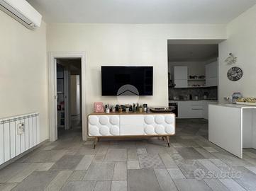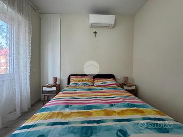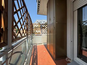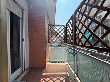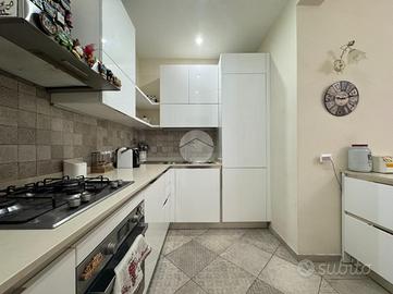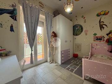 Nel cuore del centro cittadino di Monterotondo, a pochi passi dai principali servizi, proponiamo in vendita un comodo trilocale di 85 mq in perfetto stato. L'appartamento si trova al quinto piano di una palazzina in cortina servita da ascensore. Ristrutturato nel 2017, l'immobile offre una disposizione funzionale degli spazi. Entrando, si viene accolti da un luminoso soggiorno dal quale è possibile accedere ad un pratico cucinotto separato e ad un ampio balcone abitabile, ideale per momenti di relax all'aperto. Proseguendo, un disimpegno divide totalmente la zona giorno dalla zona notte, composta da una camera da letto matrimoniale dotata di bagno privato e accesso diretto ad un secondo balcone (completo di attacchi per la lavatrice e asciugatrice) una luminosa cameretta, anch'essa completa di balcone, un funzionale studio e infine un comodo servizio completo di box doccia. L'immobile è valorizzato da infissi in doppio vetro, che garantiscono un eccellente isolamento termico e acustico, predisposizione dell'impianto d'allarme , porta blindata, tende da sole, zanzariere, citofono, e condizionatori. Completa la proprietà un comodo posto auto coperto assegnato.