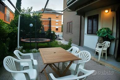 Monterotondo Scalo - Zona Centrale In zona centrale, all'interno di un contesto residenziale tranquillo e ben curato, proponiamo in vendita un appartamento trilocale di 80 mq interni con ampio giardino privato di circa 70 mq, posto al piano terra di una palazzina in cortina e tinta, dotato di doppio accesso sia indipendente dal giardino che dal vano condominiale. L'immobile si compone di un luminoso soggiorno con angolo cottura, ideale per la vita quotidiana e per accogliere gli ospiti. Un disimpegno conduce alla zona notte, dove troviamo una camera matrimoniale, una camera singola e un bagno finestrato con vasca. A completare la proprietà un posto auto scoperto all'interno dell'area condominiale. L'appartamento è dotato di numerosi comfort: porta blindata, infissi in doppio vetro con scuri esterni, grate di sicurezza, zanzariere, tende da sole e due condizionatori nelle camere da letto. Grazie al giardino privato e al doppio ingresso, questa soluzione rappresenta la scelta ideale per chi desidera vivere in un ambiente riservato, comodo e ben collegato, senza rinunciare a spazi esterni da godere in ogni stagione. Per maggiori informazioni e per prenotare un appuntamento contattate la nostra sede ai seguenti recapiti: Tel: Whatsapp: Ogni agenzia ha un proprio titolare ed è autonoma.