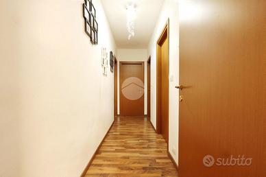MONTESILVANO CENTRO: in prossimità del centro commerciale Oasi e di tutti i principali servizi, proponiamo in vendita un grazioso trilocale di recente costruzione. La soluzione si trova al quinto piano, servito da ascensore, ed è inserita nel complesso residenziale 'Le Palme', caratterizzato da ampi e curati spazi verdi. L'appartamento apre su una luminosa e ampia zona giorno con angolo cottura ed accesso diretto al terrazzo abitabile. Un disimpegno permette l'accesso alla zona notte composta da due camere matrimoniali, una delle quali con terrazzo privato, bagno principale con vasca e bagno di servizio con doccia. L'abitazione si presenta in ottime condizioni interne, con riscaldamento autonomo a radiatori, portoncino blindato, infissi in legno con doppio vetro, tende da sole. La soluzione è ideale per chi desidera vivere in prossimità dei principali servizi ed al contempo in una zona tranquilla e residenziale. Per visionare l'immobile contattaci.