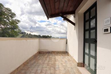 Montesilvano, in primissima collina e in posizione panoramica, precisamente in Via Martiri di Belfiore, proponiamo in vendita appartamento in piccola palazzina. Lo stabile, risalente ai primi del '900, è interamente recintato, dispone di un ampio cortile ed è composto da sole cinque unità abitative. L'appartamento, con ingresso indipendente, è posto al primo piano. Una gradinata con balcone permette l'accesso all'immobile, composto da ampia zona giorno. Il cucinotto è separato ed è caratterizzato da un ampio terrazzo da cui godere di una piacevole vista panoramica da cui godere di un bello scorcio di mare. Un disimpegno apre sulla zona notte, composta da due camere matrimoniali e bagno con doccia walk-in. Completano la proprietà due posti auto assegnati all'interno del cortile condominiale. La soluzione si trova in buono stato sia interno che esterno, essendo stato già ristrutturato, dispone di infissi in pvc con doppio vetro e persiane, impianto di riscaldamento autonomo, pavimentazione sostituita e bagno ristrutturato. Immobile ideale per chi desidera vivere fuori dal centro città in posizione riservata e tranquilla ma con i principali servizi nelle immediate vicinanze. Per visionare l'immobile contattaci.