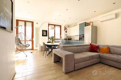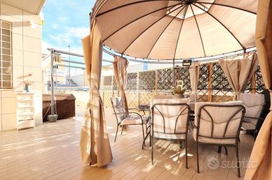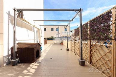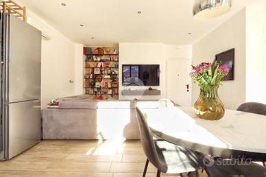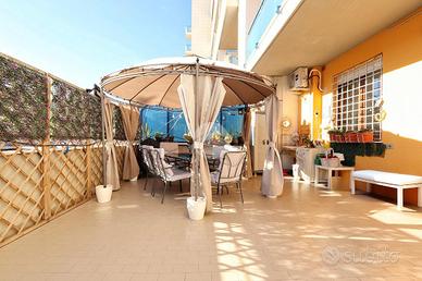 MONTESILVANO CENTRO: in prossimità del centro commerciale Oasi e di tutti i principali servizi, proponiamo in vendita un grazioso trilocale ristrutturato. La soluzione si trova al piano terra ed è inserita nel complesso residenziale 'Le Palme', arricchito da ampi e curati spazi verdi. L'appartamento apre su una luminosa e ampia zona giorno con angolo cottura. Una portafinestra permette l'uscita sullo sfogo estero con angolo lavanderia. La zona notte è composta da una camera matrimoniale, con uscita sul medesimo terrazzo, cameretta e bagno con doccia. Completa la proprietà la possibilità di acquistare a parte un comodo garage di 24 mq posto al piano seminterrato. L'abitazione si presenta in ottime condizioni interne essendo stato ristrutturato nel 2021. Dispone di riscaldamento autonomo a radiatori, portoncino blindato, infissi in legno con doppio vetro, impianto di aria condizionata, caldaia a condensazione e pavimentazione in gres effetto legno sosituita su tutta la superficie. La soluzione è ideale per chi desidera vivere in prossimità dei principali servizi ed al contempo in una zona tranquilla e residenziale. Per visionare l'immobile contattaci.