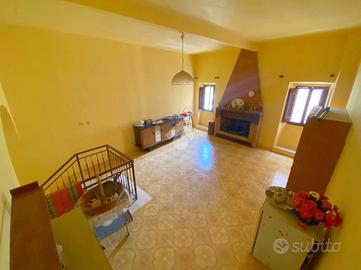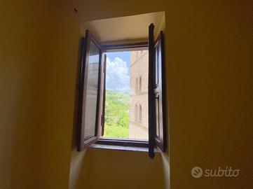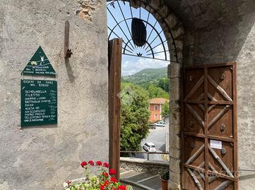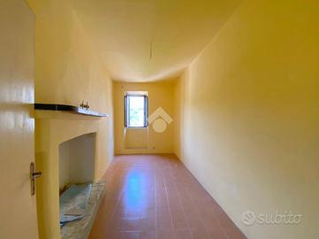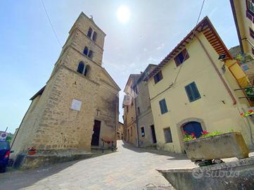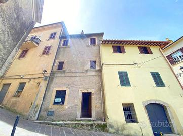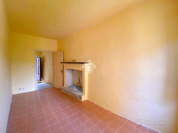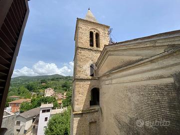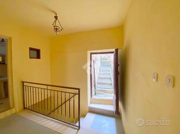 All' entrata troviamo l'ingresso e una stanza di passaggio; salendo le scale c'è un ampio salone con camino, qui la vista dalla sala principale, affaccia sul campanile del paese. Al piano superiore c'è la zona notte con due camere da letto di cui una con camino e bagno con doccia. All'ultimo piano c'è un secondo ingresso indipendente che collega l'abitazione al centro del borgo.