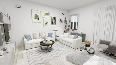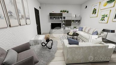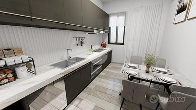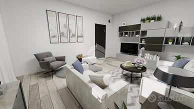 E' composto da ingresso su ampio disimpegno che conduce al soggiorno con accesso al balcone vivibile. La cucina rimane separata per un maggiore comfort, anch'essa con accesso al balcone vivibile. Tramite pratico corridoio si accede alla zona notte composta da due camere da letto, di cui una camera matrimoniale e una camera singola, e al servizio finestrato con vasca da bagno. Infine un funzionale ripostiglio utilizzato anche come zona lavanderia per ulteriore praticità.