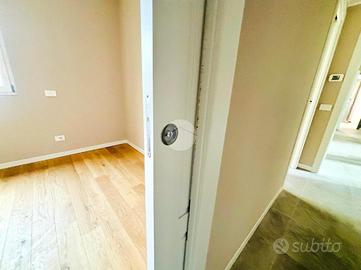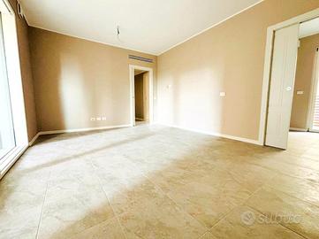 Entrando nella soluzione si ha l'ingresso all'ampia e raffinata zona giorno con accesso diretto al terrazzo e all'ampio balcone vivibile tramite una grande vetrata scorrevole che permette alla luce naturale di illuminare l'appartamento. La cucina rimane separata per un maggior comfort, anch'essa con accesso al terrazzo, mentre la zona notte è ben distribuita e composta da due camere da letto che garantiscono al meglio tranquillità e relax. Concludono due servizi di pregio.