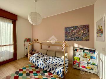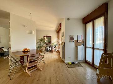 Zona San Giuseppe - Appartamento ristrutturato con terrazzino, box e posto auto In zona San Giuseppe, proponiamo in vendita un appartamento di 105 mq, completamente ristrutturato nel 2022, situato al piano medio di un edificio del 1995 servito da ascensore. L'immobile si distingue per gli spazi ampi, ben distribuiti e funzionali. L'ingresso conduce a un luminoso soggiorno con cucina a vista che espone su un terrazzino vivibile ideale per momenti di relax all'aperto. La zona notte comprende una camera matrimoniale con bagno finestrato e doccia, una cameretta con cabina armadio e un secondo bagno finestrato con vasca. È presente inoltre un comodo ripostiglio. Riscaldamento autonomo con caldaia nuova a condensazione e impianto di aria condizionata canalizzata, garantiscono comfort e efficienza energetica in ogni stagione. L'esposizione est/ sud / ovest assicura ottima luminosità naturale durante tutto l'arco della giornata. Completano la proprietà una cantina, un box auto a 25.000 e un posto auto a 10.000, che offrono praticità e sicurezza. La posizione strategica consente di raggiungere facilmente tutti i principali servizi, scuole e vie di comunicazione.