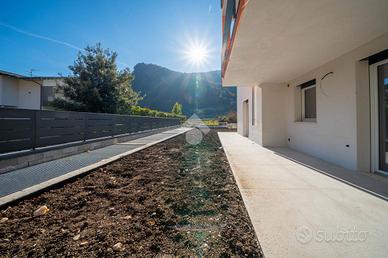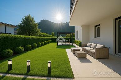 Proponiamo un trilocale di nuova costruzione, con ampi spazi e finiture di alta qualità. Con una superficie di 130 mq e una prestazione energetica A4, questo appartamento garantisce un'efficienza energetica eccellente. L'appartamento, situato al piano terra, si sviluppa in un ampio soggiorno e cucina open space con accesso al giardino di proprietà esposto a sud. L'esposizione sud - est permette di godere di una luce naturale durante tutta la giornata, creando un ambiente luminoso e accogliente. La zona notte è composta da una camera matrimonialecon uscita sul giardino privato, una camera doppia e un bagno finestrato. Tutte le finiture dell'appartamento sono di alta qualità, con possibilità di personalizzazione, per adattarsi ai gusti e alle esigenze del cliente. L'immobile è dotato di infissi in PVC triplo vetro, tapparelle elettriche in tutto l'appartamento, e un impianto di riscaldamento e raffrescamento a pavimento. Il sistema di deumidificazione e ventilazione meccanica controllata (VMC) assicura una qualità dell'aria ottimale, mentre l'impianto fotovoltaico centralizzato contribuisce alla riduzione dei consumi energetici. I pavimenti sono in gres porcellanato di alta qualità, resistenti e facili da mantenere. L'appartamento è protetto da un portoncino blindato e dotato di videocitofono e sistema di antifurto, per garantire la massima sicurezza. Il Residence è composto da 6 palazzine indipendenti ed è dotato di vialetti illuminati, un parco giochi per bambini, posti auto condominiali e un interrato con la possibilità di acquistare una cantina e un box auto singolo o doppio con portone motorizzato e pannelli metallici coibentati, garantendo sicurezza e protezione. Al momento l'appartamento è in fase di finiture; esso viene venduto non arredato. Situato in una zona tranquilla ma ben servita, offre la comodità di essere a pochi passi dal centro, senza rinunciare alla privacy e alla serenità. Mori è un paese tranquillo e soleggiato, con circa 10.000 abita