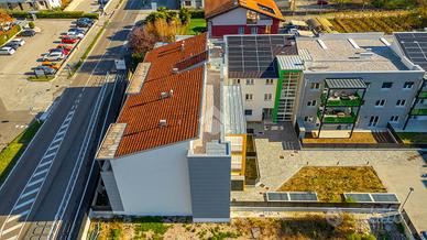 L'immobile presenta finiture moderne e materiali di qualità: infissi in PVC con triplo vetro, tapparelle elettriche, impianto di riscaldamento e raffrescamento a pavimento, ventilazione meccanica controllata e sistema di deumidificazione integrato, per un'aria sempre pulita e un clima ideale. Il complesso è dotato inoltre di impianto fotovoltaico centralizzato, che contribuisce a ridurre ulteriormente i consumi energetici.