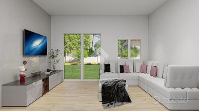 Dal soggiorno si accede direttamente a un ampio giardino privato con porticato coperto, uno spazio esterno esclusivo e ben fruibile, ideale per pranzi e cene all'aperto, momenti di relax o per vivere appieno la zona living anche nelle mezze stagioni, grazie alla presenza del portico che garantisce comfort e protezione.