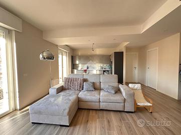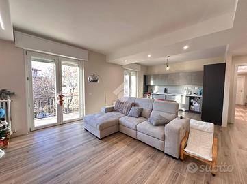 Al secondo e ultimo piano di una palazzina servita da ascensore proponiamo un elegante trilocale completamente rinnovato nel 2025. Accedendo alla soluzione l'ingresso conduce a un ampio soggiorno con cucina a vista, un ambiente luminoso e ben organizzato che rappresenta il cuore della casa. La zona notte si compone di due camere da letto e doppi servizi, mentre due balconi garantiscono piacevoli sfoghi esterni.