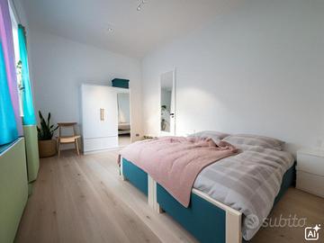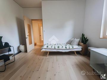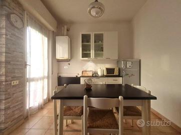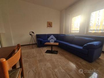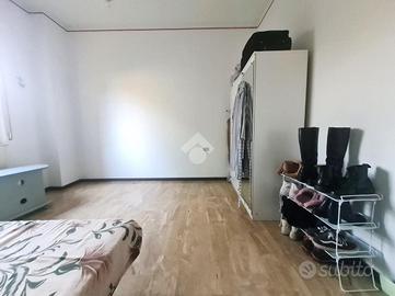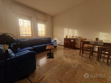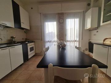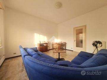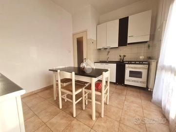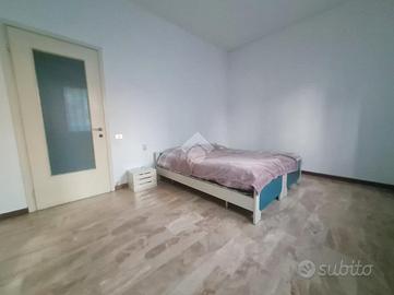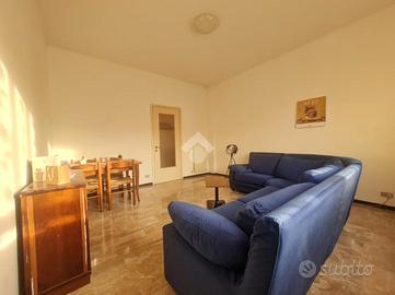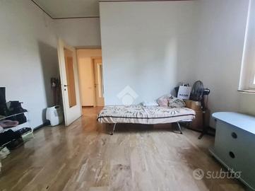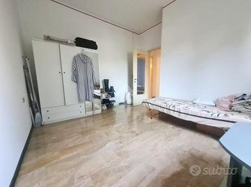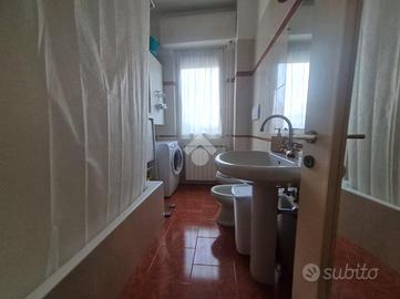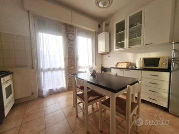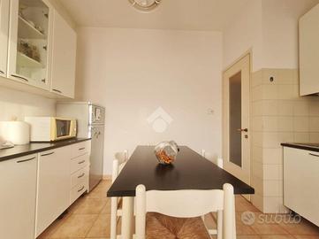 Proseguendo troviamo la cucina abitabile con portafinestra per accedere all'unico balcone dell'appartamento. Accanto alla cucina, proseguendo nel corridoio, troviamo il bagno ,con vasca, e le due ampie camere da letto.