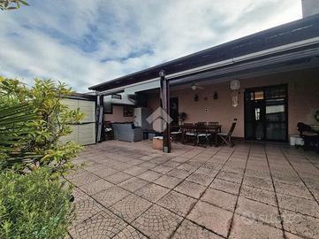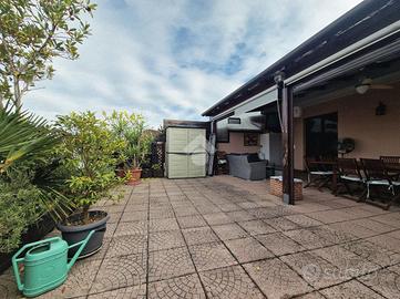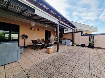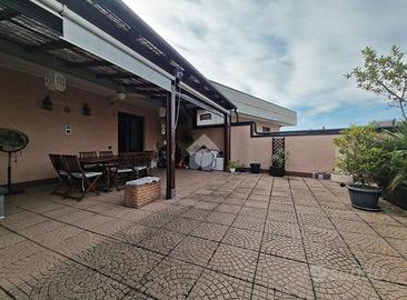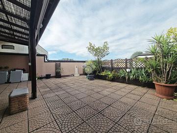 In posizione ottimale per raggiungere Monza, proponiamo prestigioso appartamento posto all'ultimo piano impreziosito da un godibile terrazzo di 75mq. L'immobile si presenta in ottimo stato interno con finiture di alto standard qualitativo: impianto fotovoltaico con lastrico solare di proprietà, impianto domotico con tapparelle motorizzate elettriche, aria condizionata canalizzata e impianto di antifurto. L'ingresso è sull'ampio e luminoso soggiorno caratterizzato dal camino a pellet mentre la cucina abitabile dispone di uscita sul pratico balcone. Il disimpegno, valorizzato da un comodo abbassamento strutturale utilizzabile come ripostiglio, collega la zona notte dove sono presenti la camera da letto matrimoniale, la cameretta in grado di ospitare due letti singoli, un bagno di servizio e un bagno padronale rivestito con ceramiche moderne e completo di vasca e doccia. Completa la proposta il box doppio in larghezza a parte ad Euro 30.000,00.