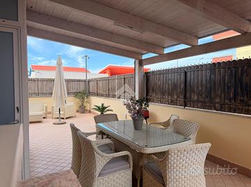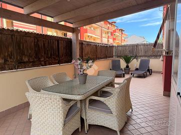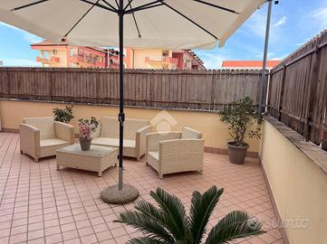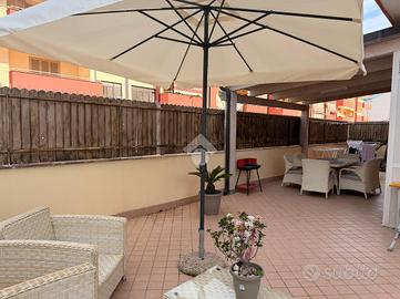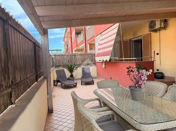 Splendido appartamento con terrazzo attrezzato e box autoSplendido appartamento con terrazzo attrezzato e box auto In fabbricato moderno ultimato nel 2017, proponiamo in vendita un elegante appartamento che unisce comfort, funzionalità e spazi esterni vivibili. L'ingresso si apre su una cucina abitabile arredata con gusto, che si integra perfettamente in un suggestivo open space salone/cucina, creando un ambiente accogliente e luminoso. Da qui si accede al balcone e, tramite due comodi scalini, allo straordinario terrazzo a livello di circa 85 mq. La zona notte è composta da: * Camera da letto con balcone * Cameretta anch'essa con accesso al balcone L'immobile dispone di due bagni, di cui uno posizionato prima dell'accesso al terrazzo, ideale anche per l'utilizzo durante momenti conviviali all'esterno. Il terrazzo, ampio e attrezzato, rappresenta il vero punto di forza della casa: perfetto per cene all'aperto, momenti di relax o per creare una zona living esterna da vivere tutto l'anno. È inoltre presente un pratico vano in alluminio adibito a lavanderia, estremamente funzionale. Dotazioni e comfort * Box auto di 33 mq con serranda elettrica * Riscaldamento autonomo * Impianto antifurto * Climatizzatore in cucina * Tende da sole * Ascensore con accesso diretto fino al garage Soluzione ideale per chi cerca una casa moderna, pronta da vivere e con ampi spazi esterni. Per una consulenza mutuo gratuita, rivolgiti ai professionisti di Kiron Partner. Disponibili per appuntamenti tutti i giorni (escluso il lunedì). Contattaci per maggiori informazioni o per fissare una visita!