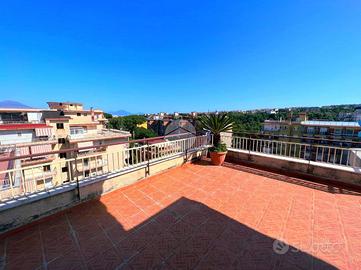 In via Emilio Scaglione a pochi passi dalla metropolitana del Frullone proponiamo in vendita all'interno del Parco Anna , con servizio di portineria e vigilanza ,un attico situato al piano alto di un edificio dotato di ascensore. L'immobile offre spazi ben distribuiti e funzionali. Entrando, si viene accolti da un luminoso soggiorno living con angolo cucina,la zona notte comprende due camere da letto, perfette per una famiglia o per chi desidera uno spazio aggiuntivo per ospiti o studio, mentre il bagno è dotato di tutti i comfort necessari. Tutto l'appartamento si apre su un grandissimo terrazzo a livello dove poter trascorrere giornate in pieno relax. L'appartamento è climatizzato, garantendo un ambiente confortevole in ogni stagione e si presenta in ottime condizioni. Completa la soluzione un comodo posto auto condominiale , una risorsa preziosa in una zona così centrale. Questa soluzione abitativa rappresenta un'opportunità interessante con ampio spazio esterno, per chi cerca una residenza elegante efunzionale a Napoli.