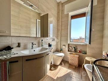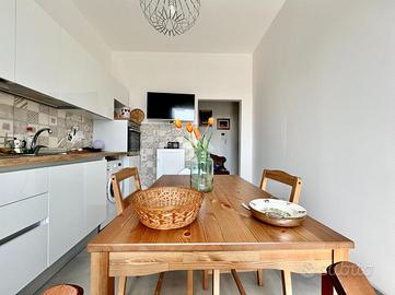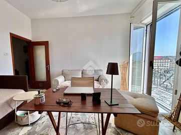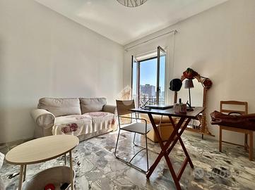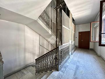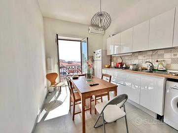 L'appartamento misura circa 80mq e si presenta in ottimo stato interno, con finiture di qualità e dettagli architettonici che coniugano il fascino storico del palazzo con il comfort della vita moderna. La soluzione è composta da due ampie camere da letto, una cucina abitabile, un moderno bagno finestrato e tre balconi che offrono scorci panoramici unici. L'esposizione esterna e l'altezza del piano assicurano una luce naturale costante e avvolgente fin dalle prime ore del mattino, valorizzando ogni ambiente e rendendo l'atmosfera particolarmente ariosa e accogliente. La casa è dotata di condizionamento autonomo caldo/freddo e sono stati recentemente installati pannelli fonoassorbenti che garantiscono un eccellente isolamento acustico e massimo comfort abitativo.